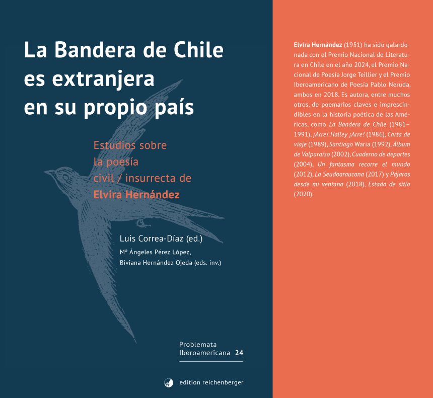 La Bandera de Chile es extranjera en su propio país. Estudios sobre la poesía civil/insurrecta de Elvira Hernández. (Kassel/Barcelona: Edition Reichenberger, Colección Problemata Iberoamericana 24, 2025). Publisher’s site