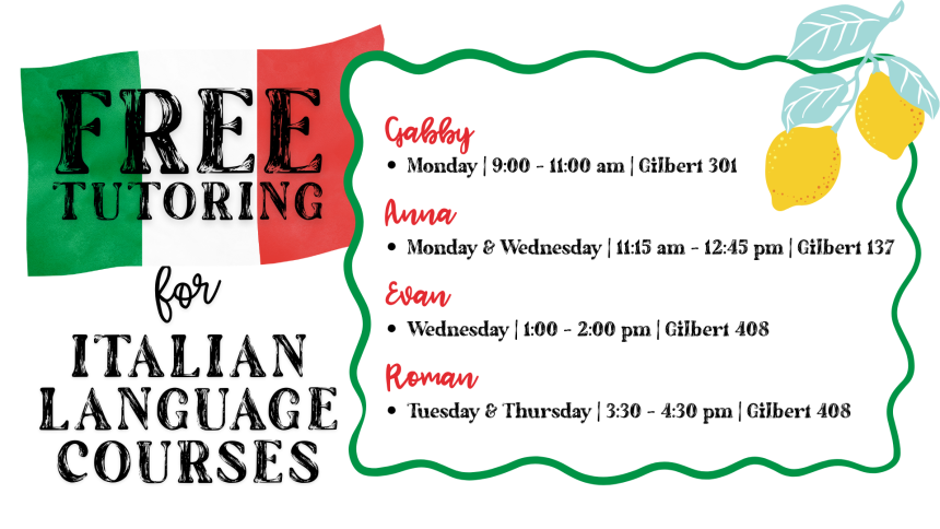 The Department of Romance Languages offers free language tutoring for current students in French, Italian, Portuguese, and Spanish. New for Spring 2026, we’ve added French conversational practice sessions.